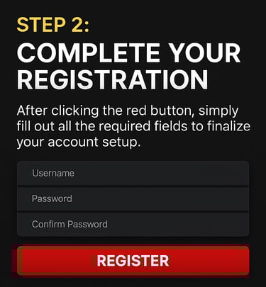 Start your sabong journey by clicking the "PLAY NOW" button at the top of the page. You’ll be directed to the registration screen where you can quickly set up your unique username and secure password—getting you one step closer to the action.